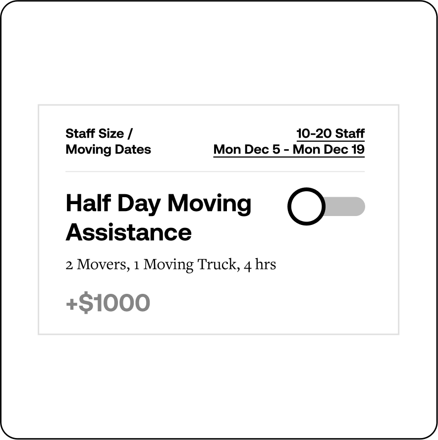 Our full suite of products and services ensures your move is seamless and stress-free while meeting all of your your company moving needs.