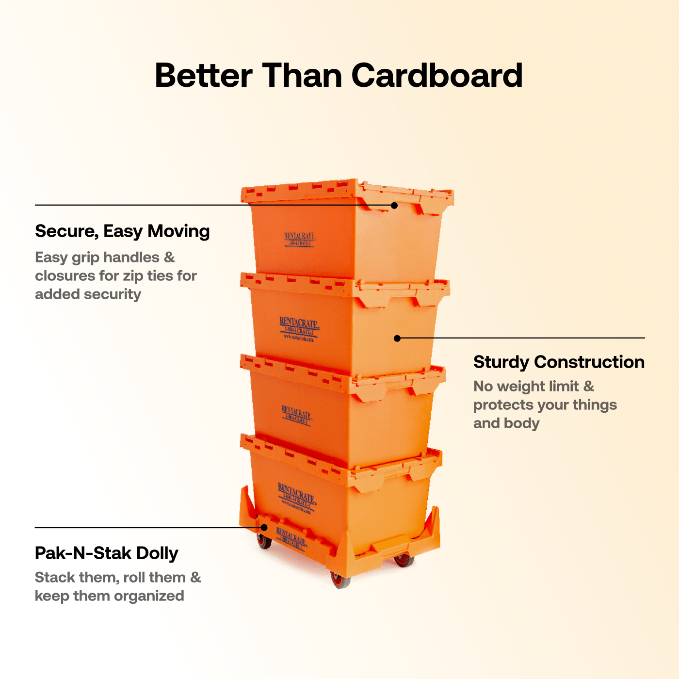 Save time & money with cratesStreamline your office move with ease by utilizing crates and dollies. Say goodbye to the clutter of cardboard boxes piled up next to desks and in hallways.